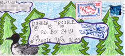 Jennifer Hattori Noll won $50 when her Rubber Trouble-stamped artwork was featured on the cover of Rubber Stamper magazine! If you get published too, you might win as well! See our contest page for details.